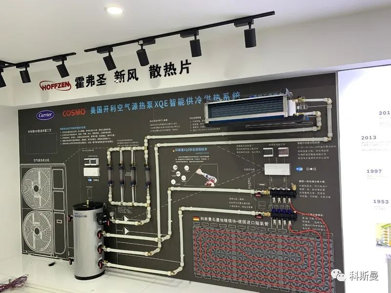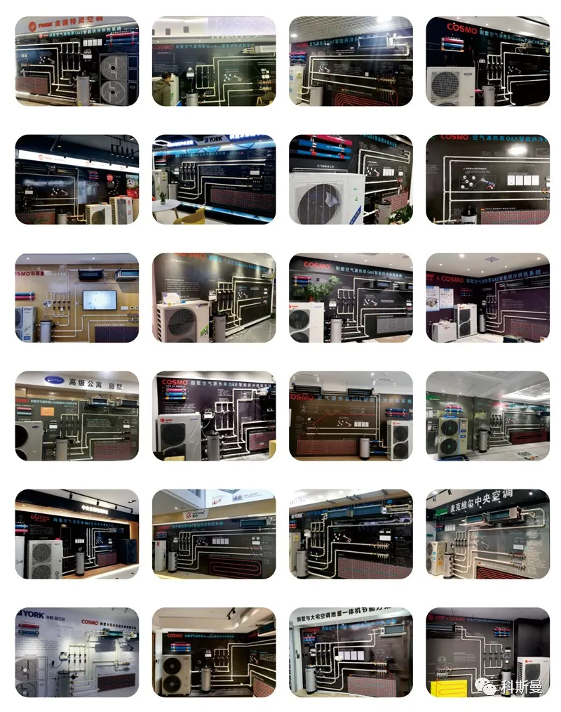 2018年科斯曼将Q&E安装方式应用到水空调领域,逐步建立一套针对两联供系统的相对完善的技术标准和体系,并在全国范围内进行推广及应用。从刚开始的行业质疑,到目前得到了主流专业经销商的认可,也同时引起了主流品牌主机厂家建立安装标准化的重视。2020年科斯曼完成了全国500个Q&E展示墙,有力推动了暖通行业两联供的标准化!