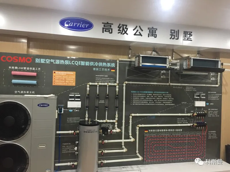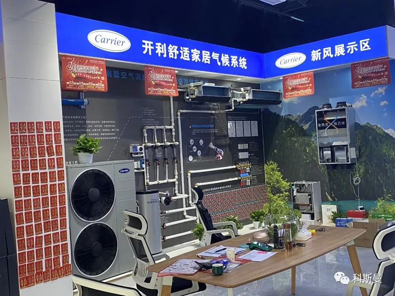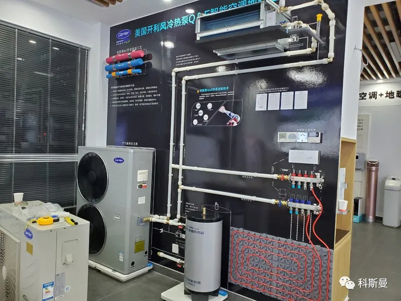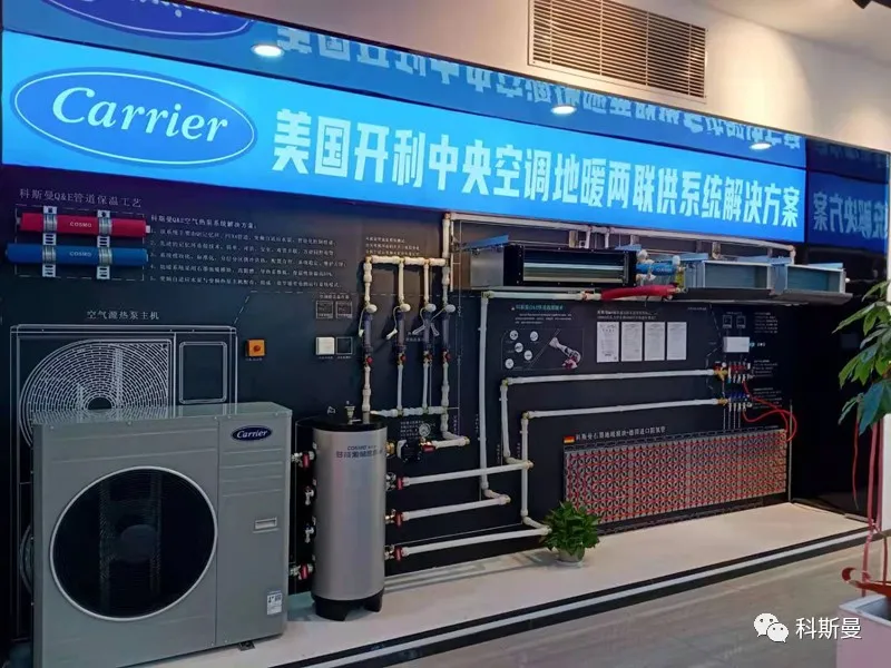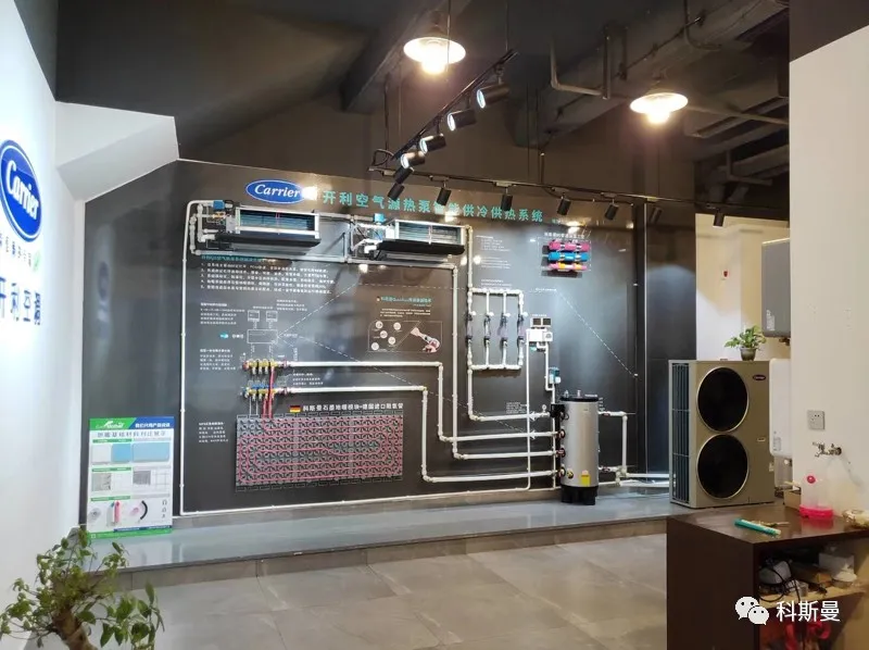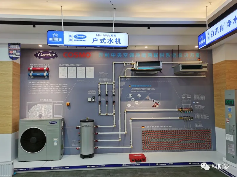 以下为科斯曼全国部分开利主机品牌展示墙,从展墙分布来看,开利做为老牌水机品牌,其在两联供市场的份额和渠道优势是毋庸置疑的!